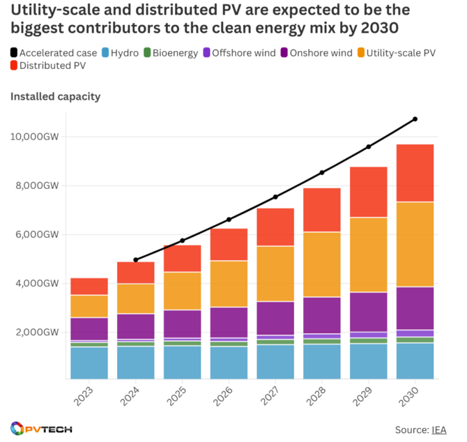 然而,这一三倍目标需要到2030年投入约11,000GW的可再生能源容量,这表明IEA 的“主要”和“加速”情况都无法实现这一目标。考虑到太阳能行业在这两种情况下的预测快速增长,如果世界要实现COP28 的目标,持续扩大太阳能装机可能至关重要。