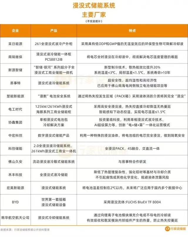 当前,由于高性能稳定的导热材料及产品整体设计的研发难度大,需要非常高的科研能力及资金保障,国内从事浸没式液冷解决方案的储能厂商并不多。
