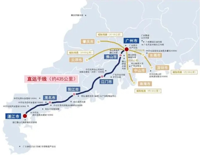 据介绍,广湛氢能高速项目是广东首个氢能高速项目,涵盖广州、佛山、东莞、江门、阳江、茂名、湛江等城市,辐射粤港澳大湾区、海南和广西东南部地区,项目依托沈海高速、汕湛高速、207国道、228国道和325国道组成的交通大网络,是广东水产品、生鲜肉类、果蔬冷链运输的大动脉。
