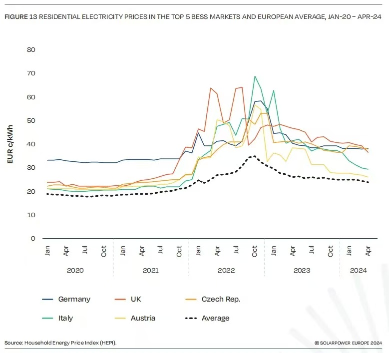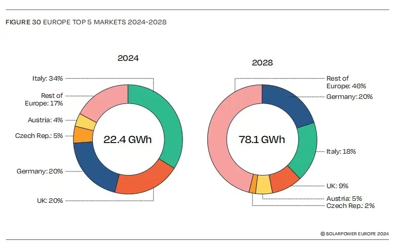 德国、意大利和奥地利这些户储的领导市场,在2023年达到创纪录的水平后,均经历了下滑。