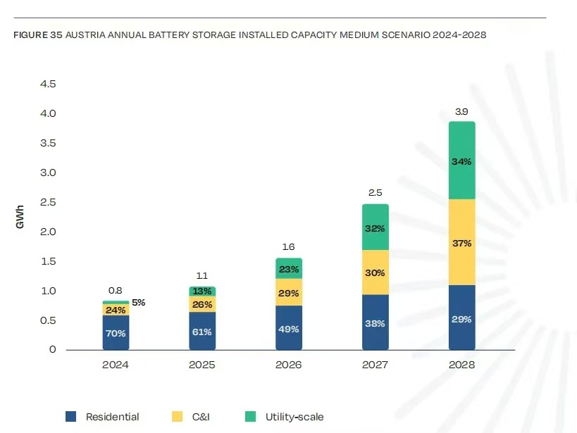 2028年,奥地利的新增装机有望达到3.9GWh。
