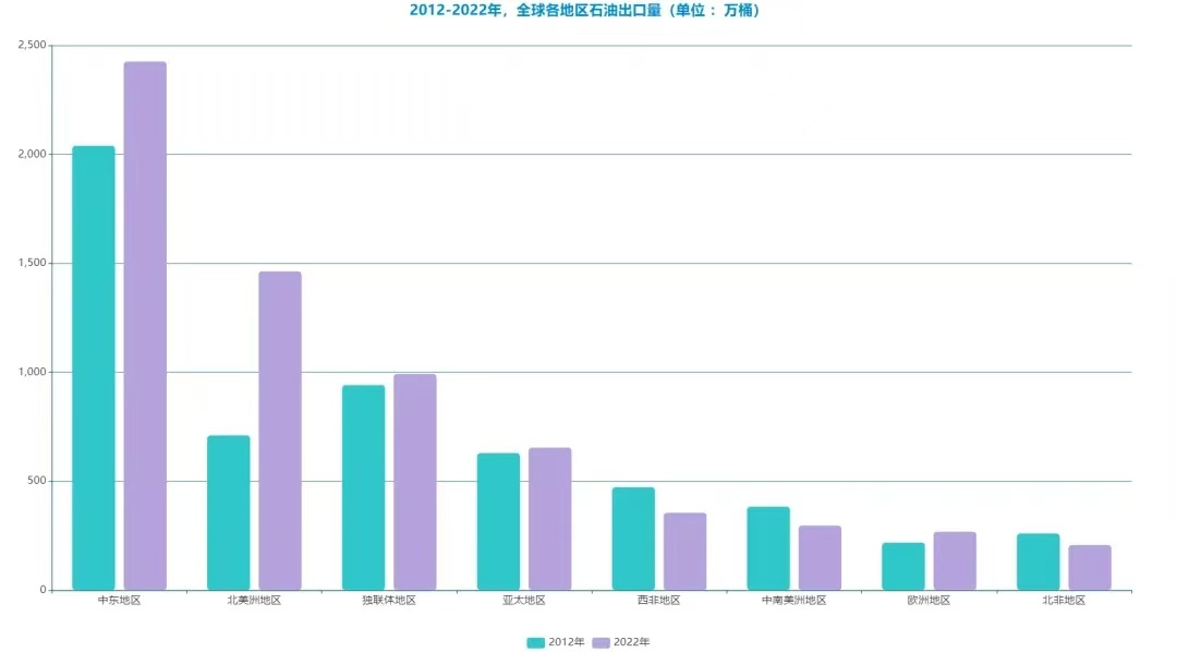 北非地区,石油出口量如同沙漏中的沙子缓缓滑落,由260万桶/日下降到207万桶/日;在全球石油出口量中的比重也由4.59%下降到3.01%,下降了1.58个百分点。