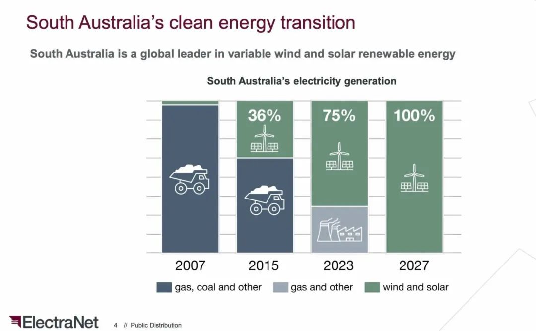 据Emms介绍,南澳大利亚将在短短二十年间完成一次前所未有的转型:从2007年到2027年,该地区从零起步,有望实现百分百可再生能源供电的宏伟目标。