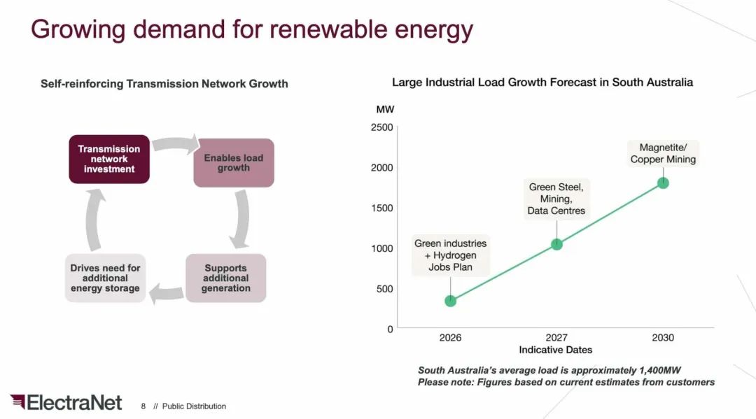 他补充道:“按照以往的行业经验,每兆瓦的用电负荷需要配套三兆瓦的可再生能源产能。这意味着2000兆瓦的新增负荷将带来6000兆瓦的可再生能源需求。显然,这将给南澳大利亚的电网带来革命性的变化。”