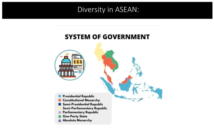 东南亚国家联盟(ASEAN)成员国在政府系统方面的多样性。