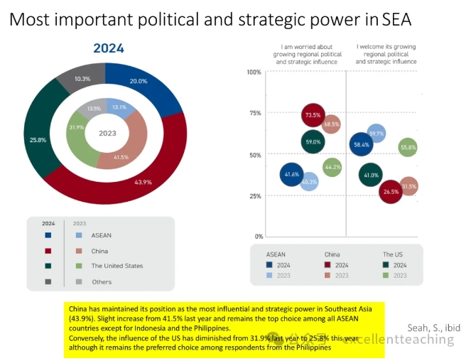 总体上,大多数东盟国家倾向于增强自身的韧性和团结,以抵御来自两大国的压力,而不是简单地选择站在某一方。这表明东盟国家在处理大国竞争时,更倾向于维护自身的独立性和多元外交政策。