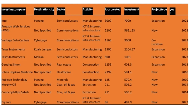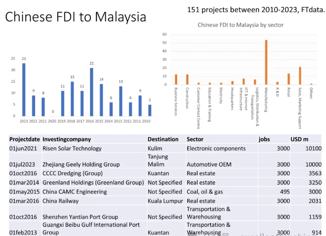 总体来看,这些数据展示了中国在马来西亚的投资活动在过去十多年中的增长趋势,以及投资的重点行业和地区。