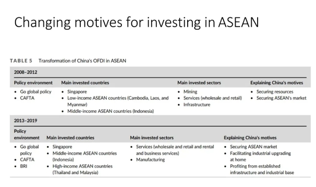 政策环境:实施“走出去”政策和中国-东盟自由贸易区(CAFTA)。