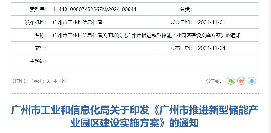 鼓励园区配置储能!广州市推进新型储能产业园区建设实施方案