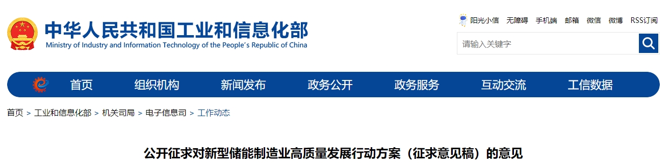 公开征求对新型储能制造业高质量发展行动方案(征求意见稿)的意见