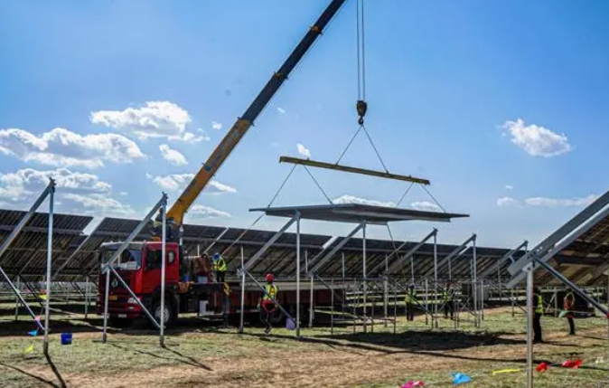 上述负责人介绍,该电站首次大规模应用稀土合金新型接地材料,具有更好地热稳定性和耐腐蚀性,更环保,采用机械连接方式,节约综合成本达40%。同时,该电站首次大规模应用光伏板与支架“一体化”融合安装方案,实现光伏方阵建设少人化、机械化、高效化,提高施工效率25%,为我国“沙戈荒”地区大型光伏项目建设积累经验。