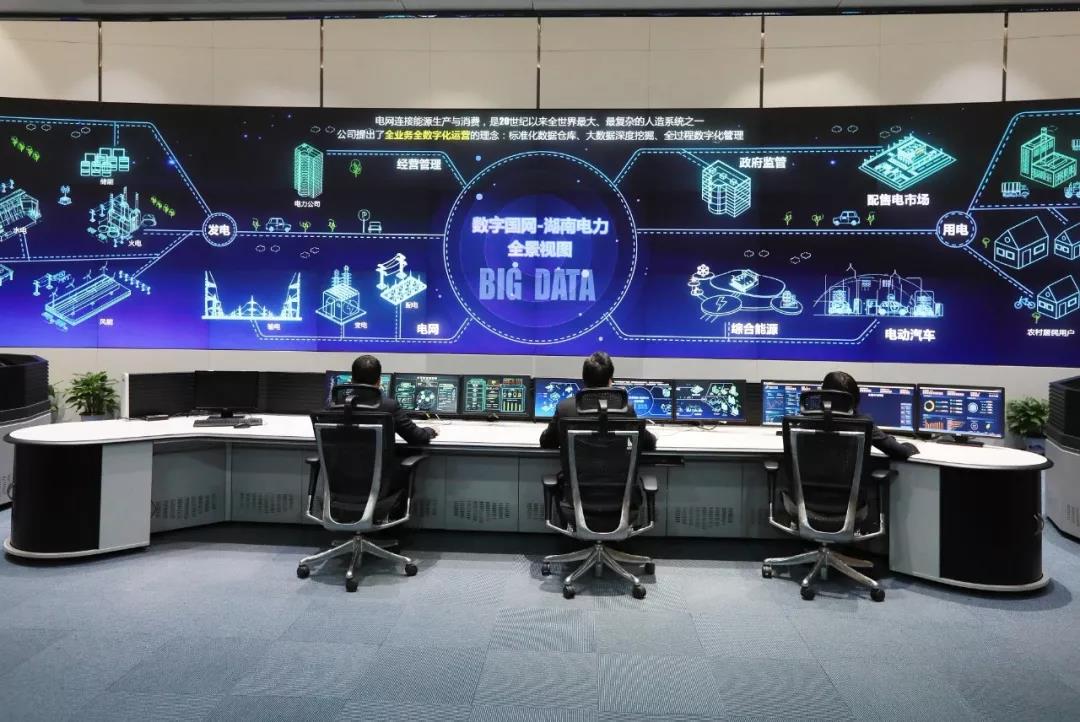 ▲国网湖南电力数据管理人员在数据共享中心监测分析数据