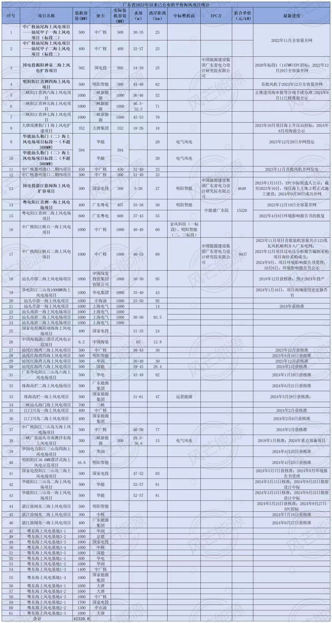 正是基于上述的高效率,截至目前,广东省也是披露平价海上风电项目数量最多的省份,项目总规模达42.3GW。