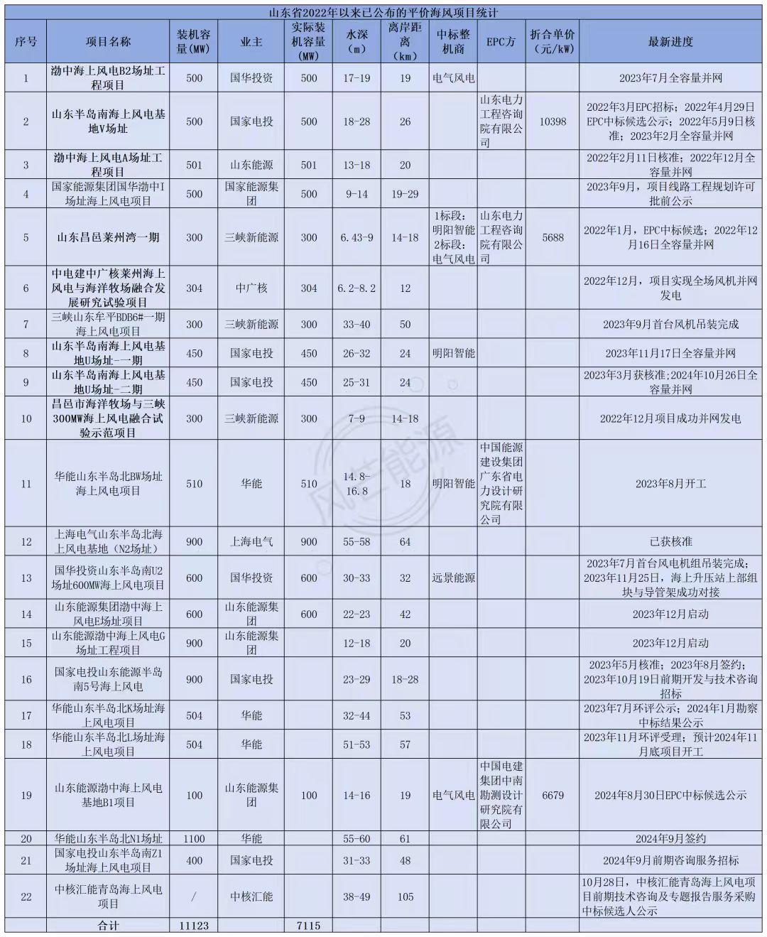 风芒能源根据公开信息不完全梳理,截至目前,山东省已披露平价海上风电项目容量位居第二,超11GW。
