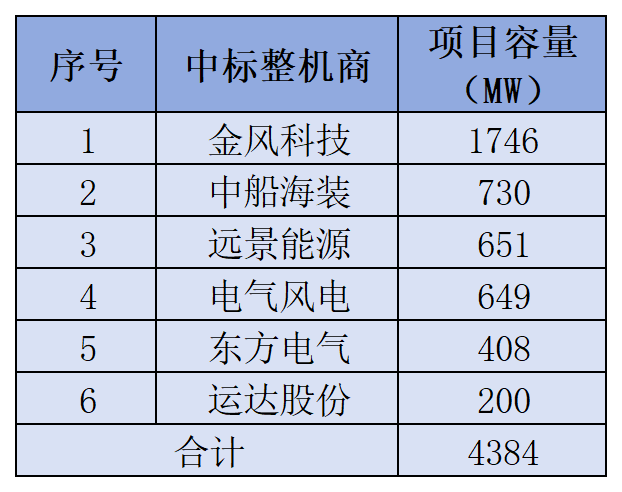 以上项目中,有5个项目业主为整机商,其中涉及3个金风科技的项目,默认中标整机商为金风科技,容量为1.6GW;1个中国船舶的项目,默认中标整机商为中船海装,容量为450MW;1个运达股份的项目,容量为200MW。