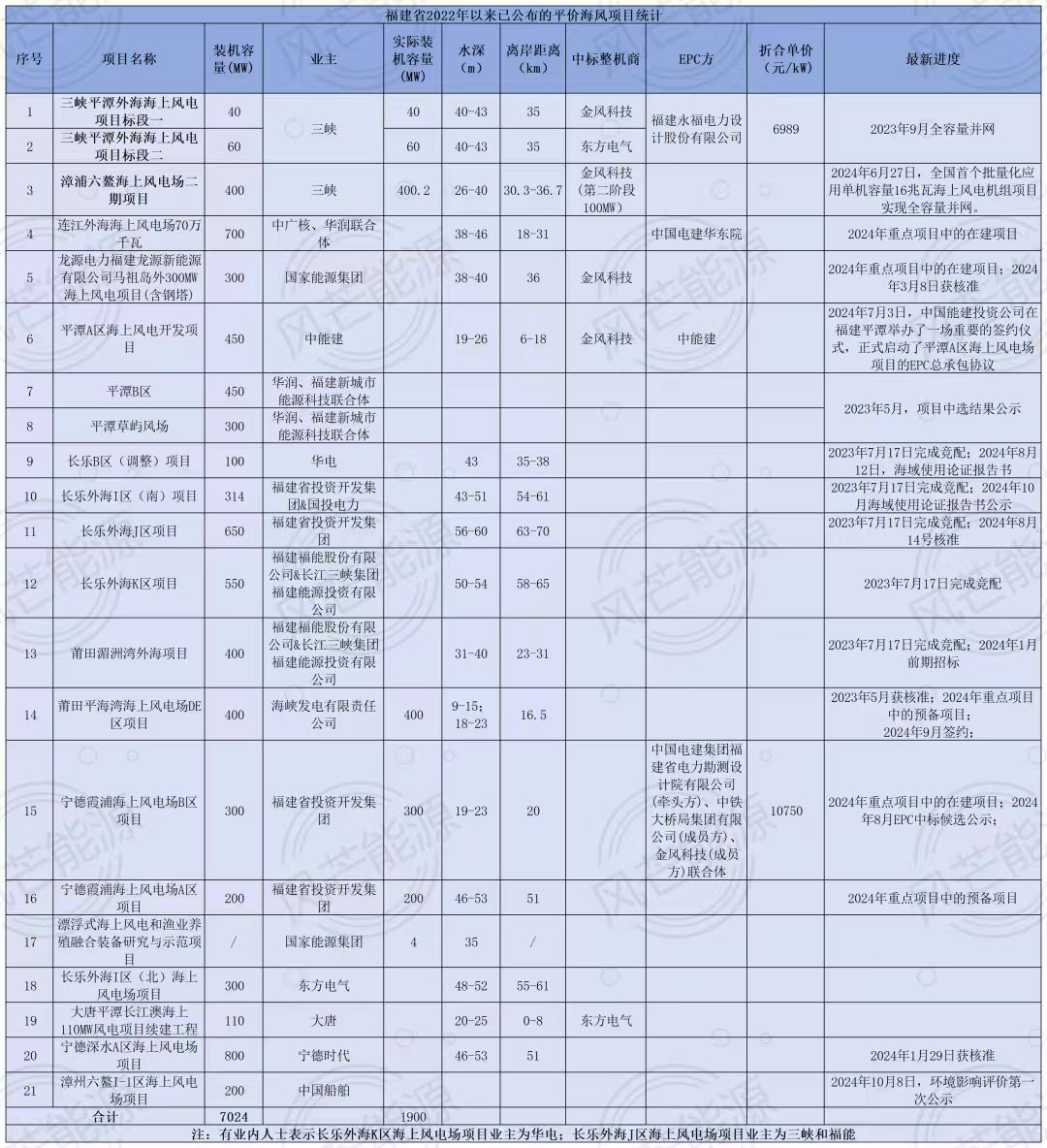 对比已经公开项目EPC招中标的价格和根据已知整机招中标价格推算,当下福建海上风电项目EPC(含风机、塔筒)折合单价集中在10750元/kW-11685元/kW左右。