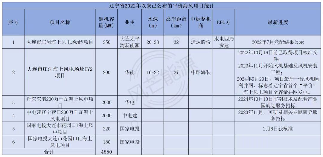 截至目前,辽宁省有一个平价海上风电项目实现全容量并网,业主为华能,容量为200MW。