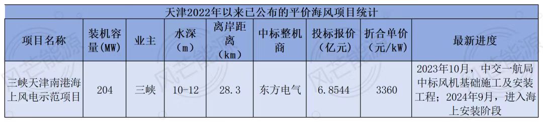 受限于资源条件,截至目前,天津仅披露一个平价海上风电项目。该示范项目总投资约22亿元,是天津市首个“双十”项目。