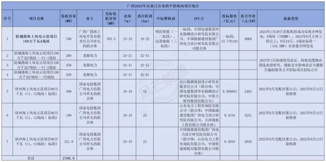 风芒能源根据公开信息不完全梳理,截至目前,广西已披露平价海上风电项目容量超2.7GW。