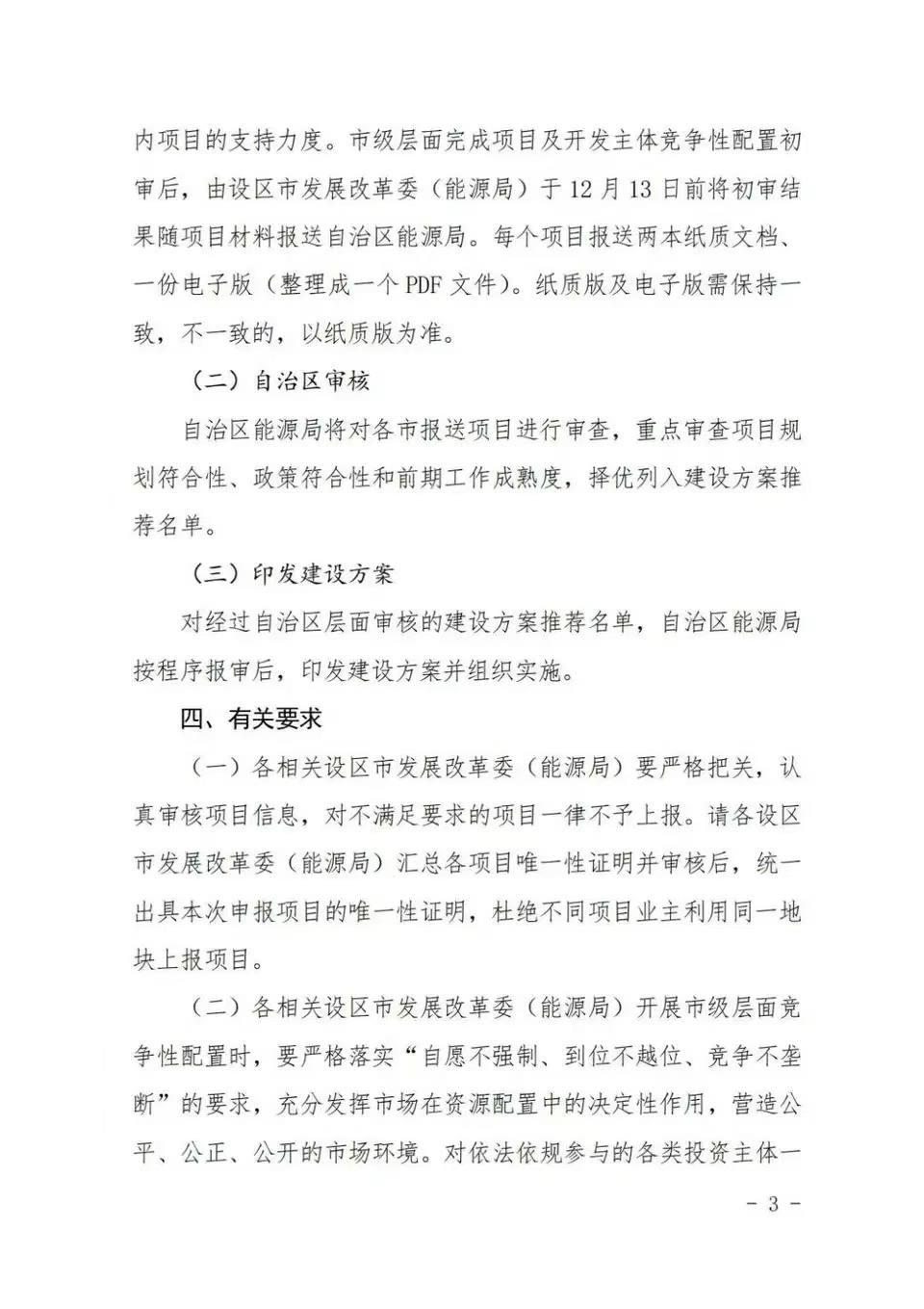 《通知》还指出,对依法依规参与的各类投资主体一视同仁,不得设置歧视性条款。不得强制要求项目开发捆绑产业,不得以任何名义增加项目的不合理投资成本,不得擅自提高项目核准或备案门槛。项目获得建设指标后,如经查实违反全国统一大市场要求、违反新能源及抽水蓄能开发领域不当市场干预行为专项整治行动等有关政策文件要求的,自治区能源局将依法依规取消项目建设指标。