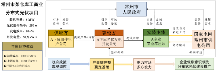 图 A公司某仓库工商业分布式光伏项目各主体间关系图片来源:作者自制