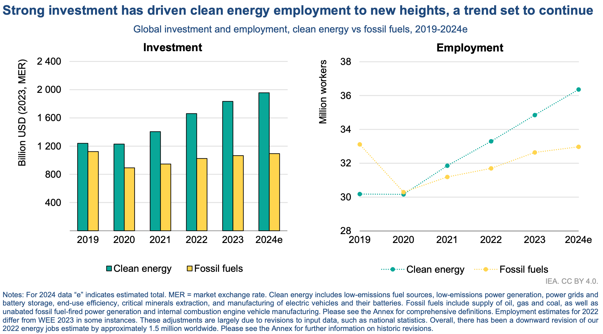 ——电动汽车和电池制造:2023年,电动汽车和电池制造领域的就业人数分别为130万和140万,中国在这一领域占全球78%的工作岗位。