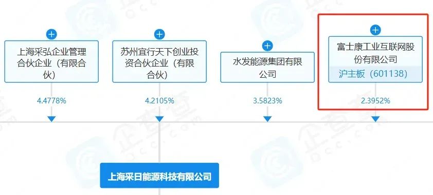 2023年7月,富士康作为战略投资者入股上海采日能源,持股占比2.39%,正式发力大陆的储能产业链。