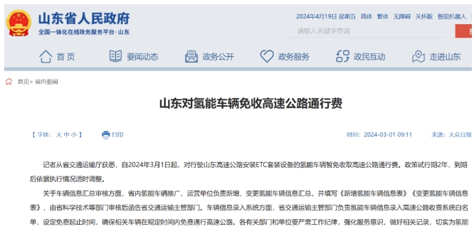 今年春节过后不久,齐鲁大地便打响了“超常规”力度支持氢能产业发展的第一枪。2月29日山东省交通运输厅、山东省发改委、山东省科技厅三部门发布《关于对氢能车暂免收取高速公路通行费的通知》。