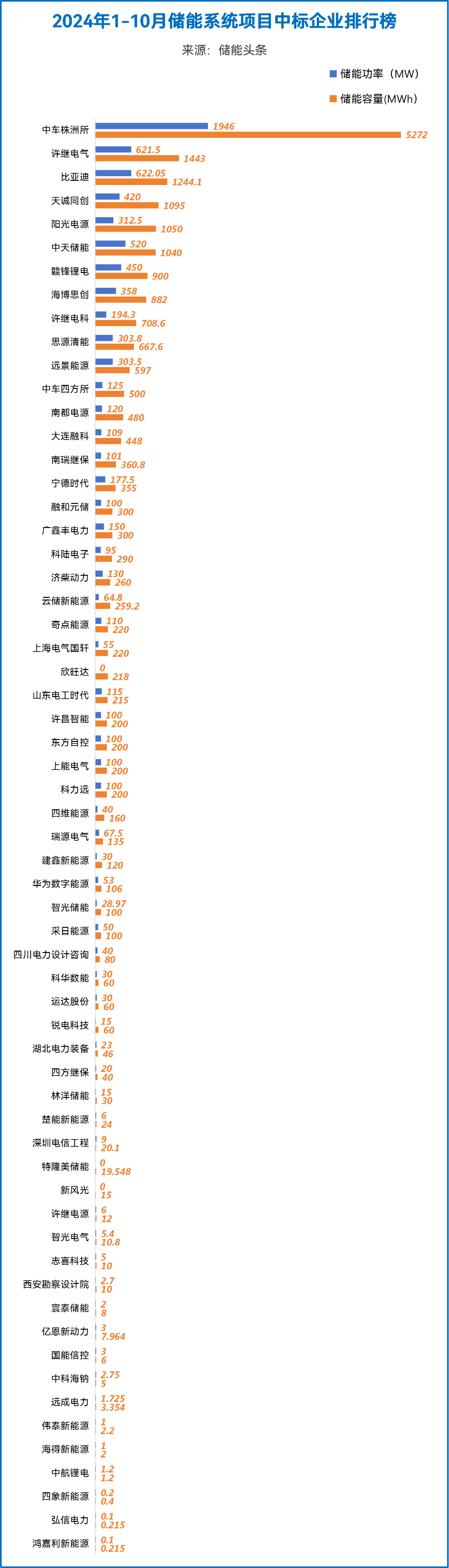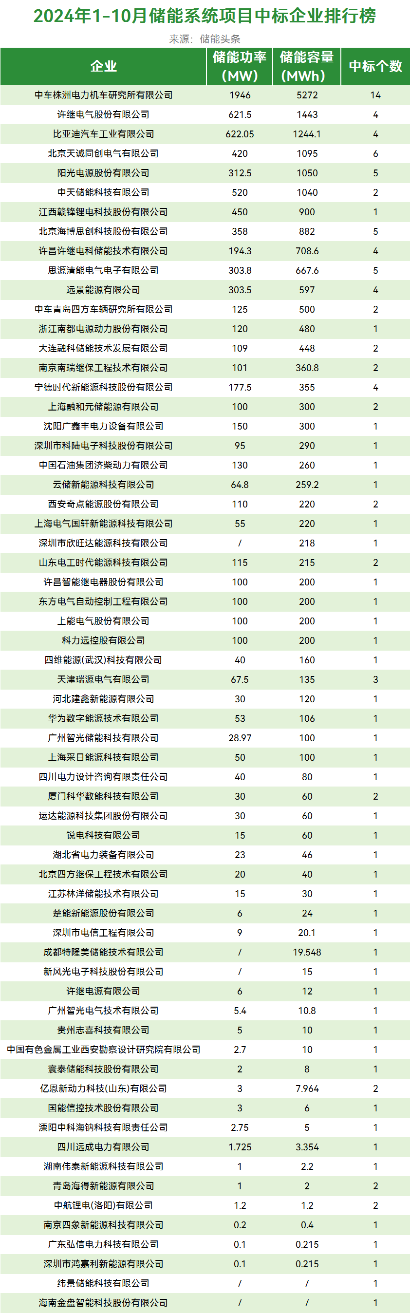 2024年1-10月,中国电气装备、国能信控累计18.89GWh储能电池集采中标结果公示。