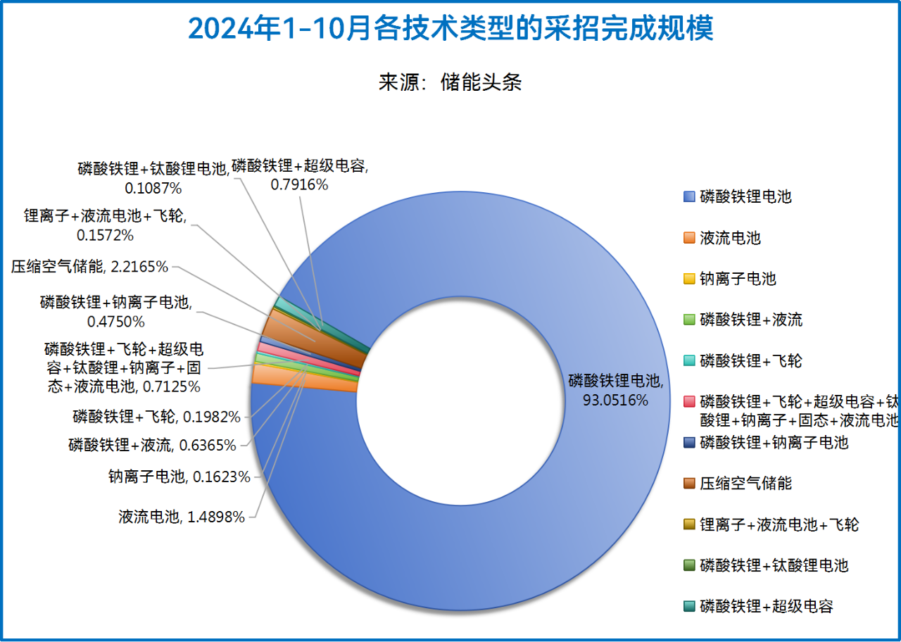 在各类储能系统技术中,磷酸铁锂储能仍是建设数量和规模最多的主流技术路线,其采招需求占比达到93.7%。