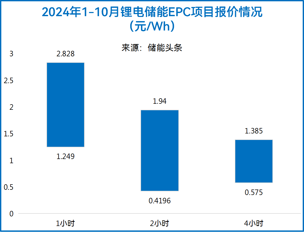4小时储能EPC报价区间为0.575-1.385元/Wh,平均报价为0.95元/Wh;