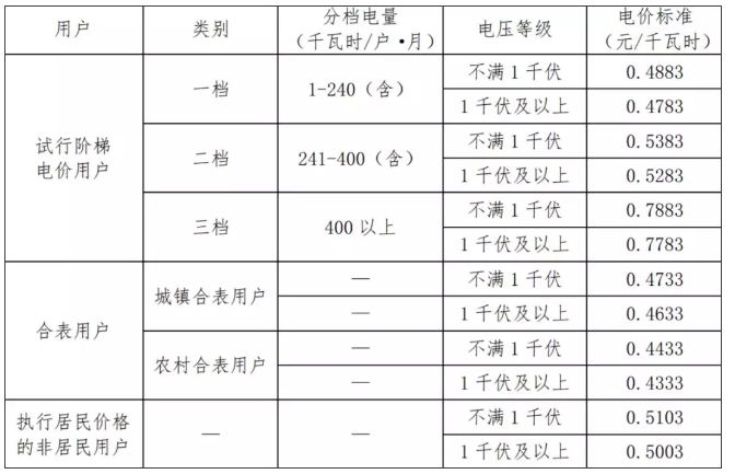 2. 未实行“一户一表”的合表终端居民用户,电压等级不满1千伏的,到户结算价按照0.5103元/千瓦时执行;电压等级1千伏及以上的,到户结算价按照0.5003元/千瓦时执行。