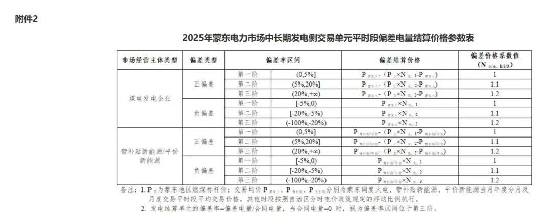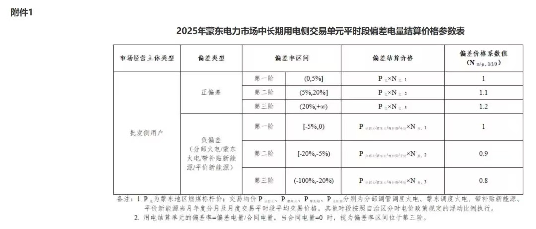 附件:1.2025年蒙东电力市场中长期用电侧交易单元平时段偏差电量结算价格参数表