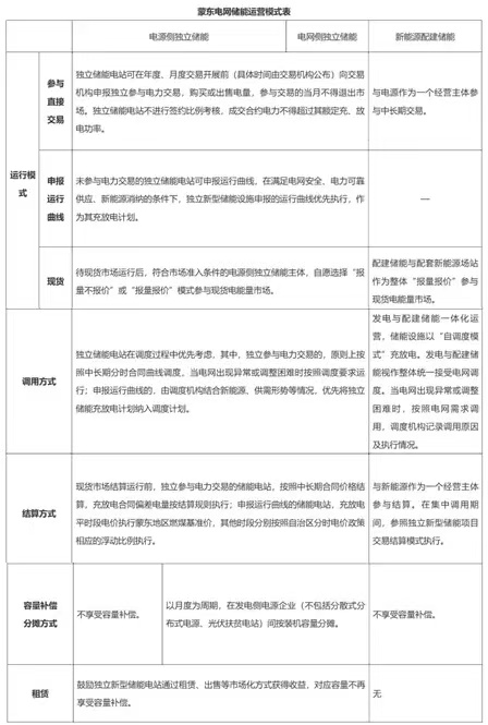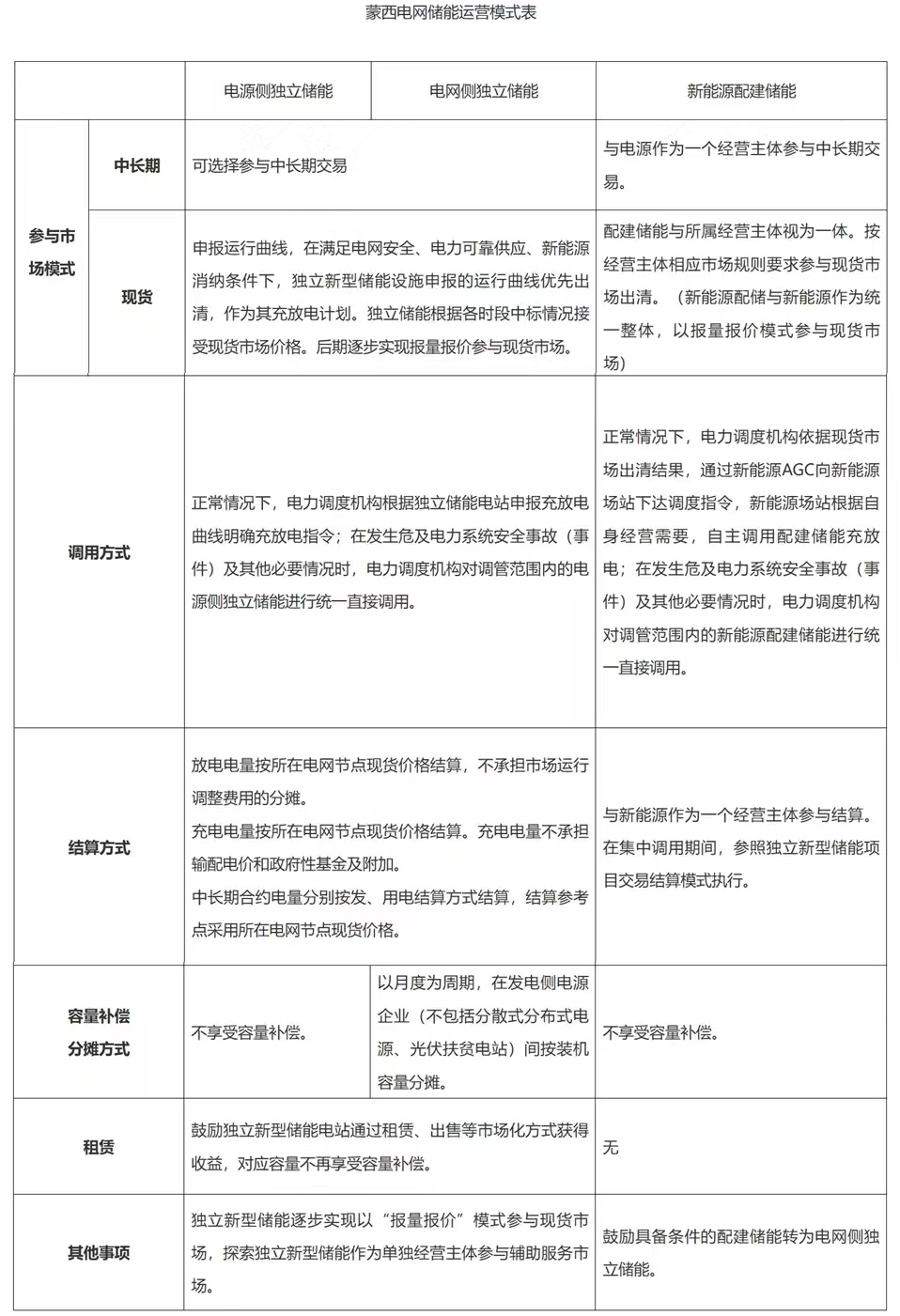 新能源配建储能,与电源作为一个经营主体参与中长期交易。现货市场运行后,与新能源作为整体,“报量报价”参与现货电能量市场。储能设施以“自调度模式”充放电。不享受容量补偿,不能通过容量租赁获利。