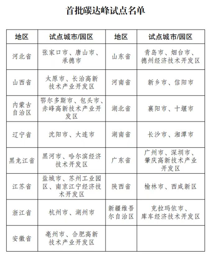 2020年9月“双碳”目标提出后,《中共中央 国务院关于完整准确全面贯彻新发展理念做好碳达峰碳中和工作的意见》、《2030年前碳达峰行动方案》两大顶层设计文件均提出“开展碳达峰试点园区建设”。2023年11月,国家发改委印发了首批碳达峰试点名单,长治高新技术产业开发区、赤峰高新技术产业开发区、哈尔滨经济技术开发区等10个园区入选。
