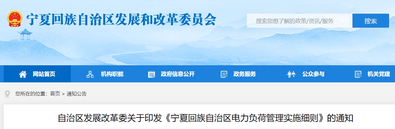 自治区发展改革委关于印发《宁夏回族自治区电力负荷管理实施细则》的通知