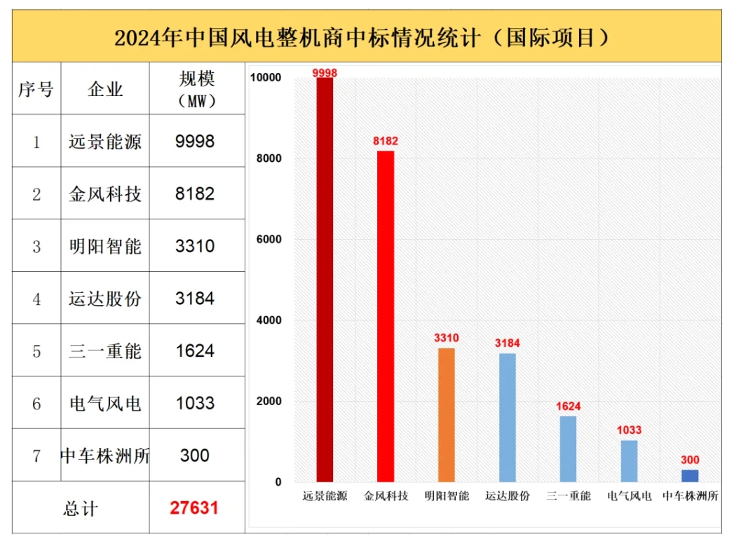国内+国际项目总榜单:远景、金风、运达 位居前三!