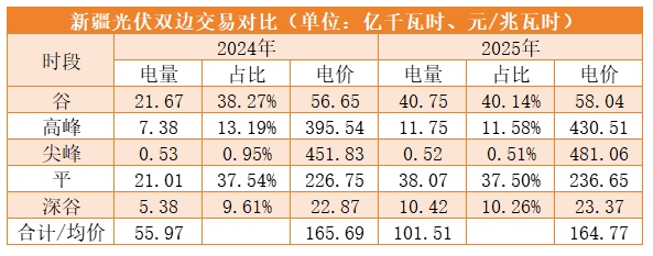 根据公开信息,近日新疆电力交易中心公布了2025年度双边交易结果,其中光伏申报电量出现了大幅增长,对比2024年上涨81%,交易电价则下降至0.16477元/千瓦时。