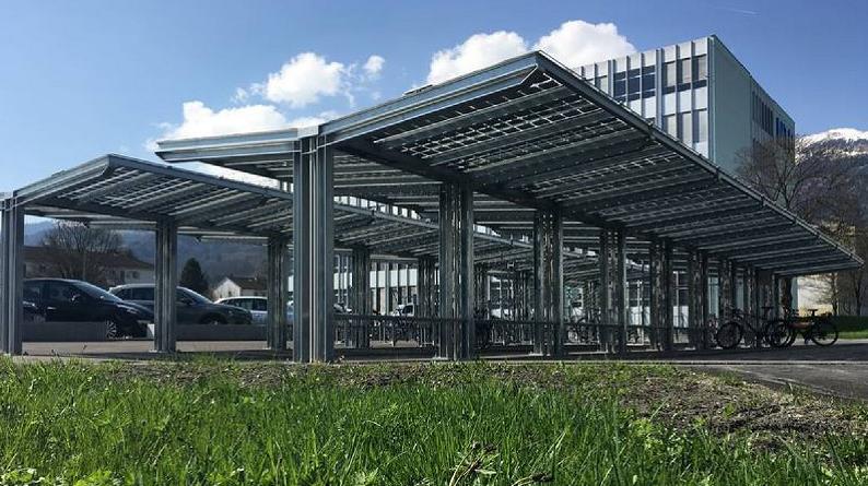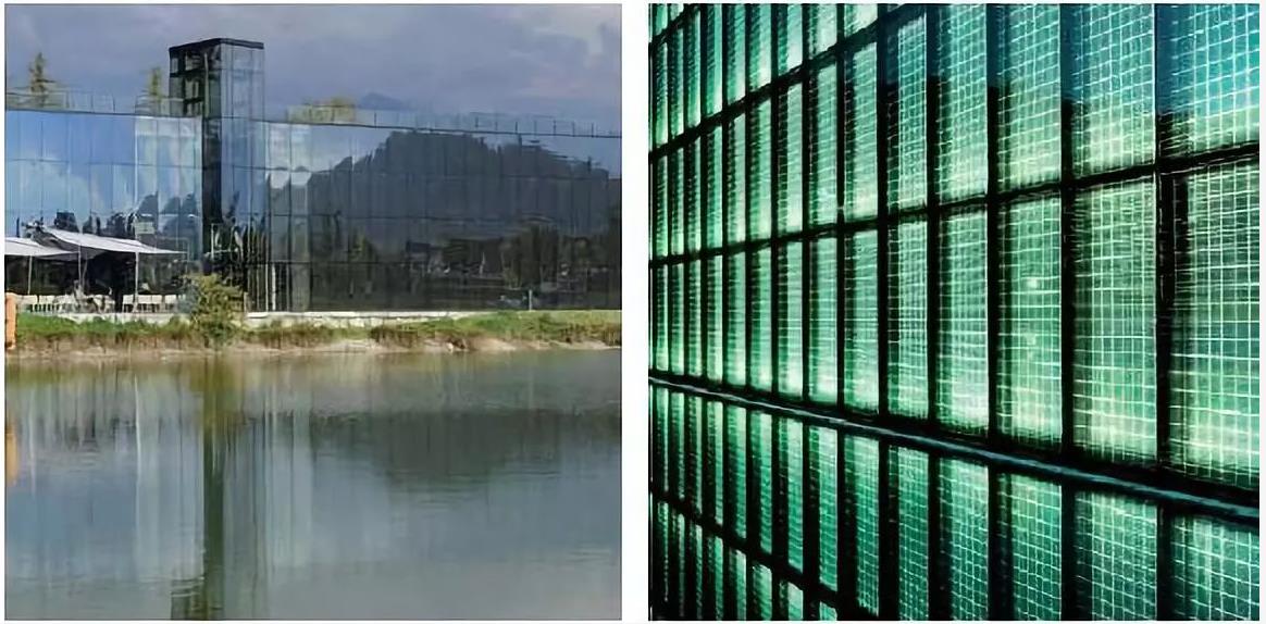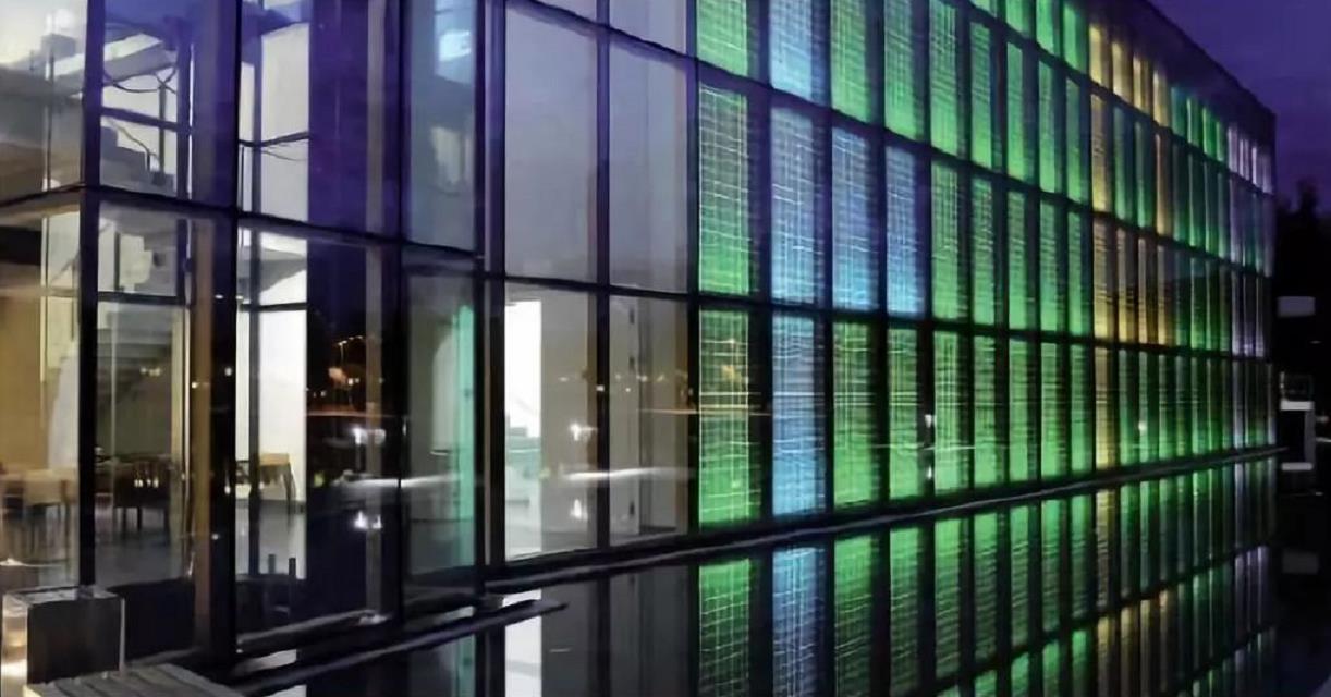 用彩色光伏板建造的幕墙,外表绚丽,实用美观。