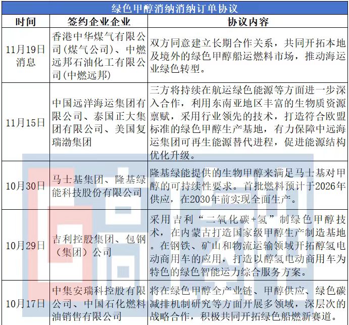 高工氢能对今年以来我国绿色甲醇消纳订单协议做了初步梳理,从统计结果来看,目前航运业无疑对绿醇的绿色溢价买单意愿更强。