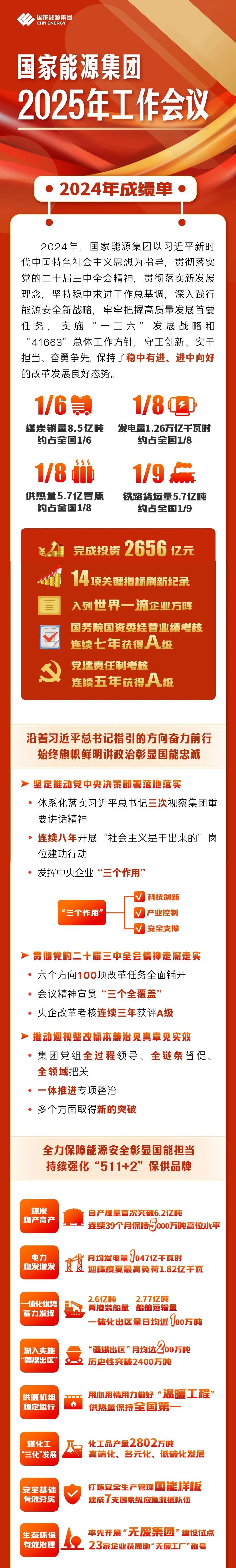1月16日,国家能源集团召开2025年工作会议。会议总结了2024年集团工作成果,并对2025年多项工作展开部署。