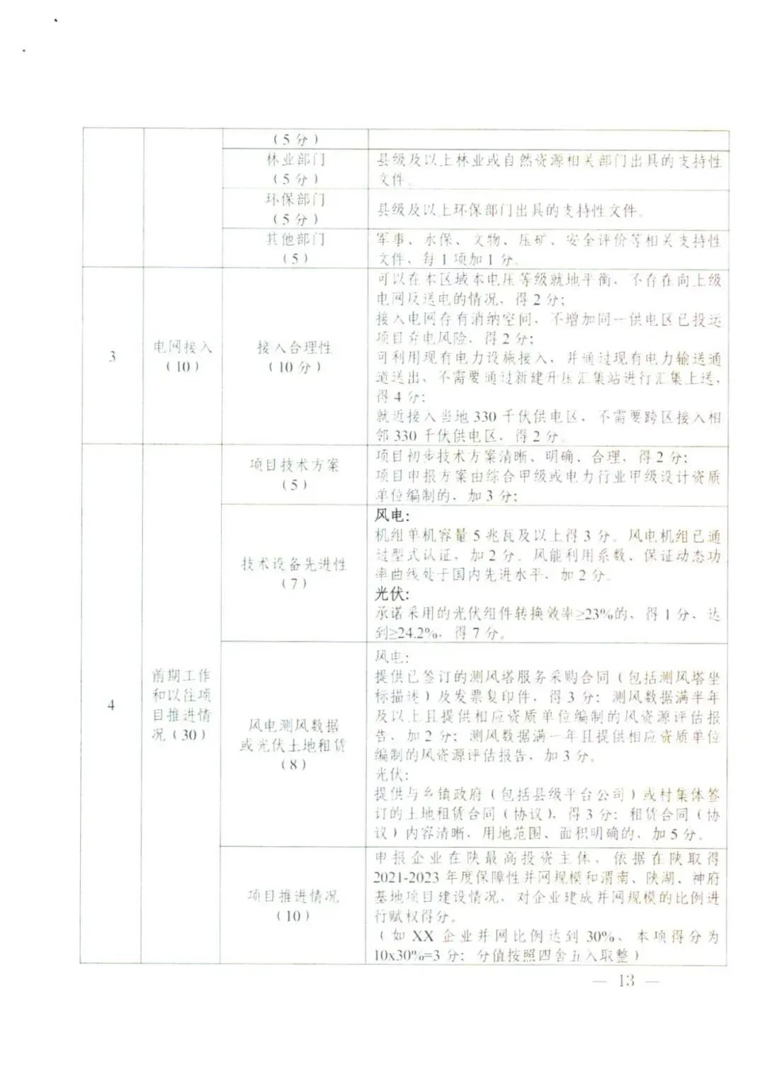 二、确保项目前期工作达到规定深度。各市要加强对投资企业开展项目建设前期工作的协调指导,风电、光伏发电项目须落实建设场址坐标、范围等内容,排查用地敏感因素,每个项目要由县级自然资源和林业部门逐个项目出具土地和林业等要素资源保障的意见,各市报送的项目须提供市级自然资源(规划)和林业部门统一出具的逐个项目用地用林用草审查意见,在通过省级发展改革、自然资源和林业部门共同审核要素保障资源的基础上,方可进入专家评分环节。光伏发电项目用地、开发建设方案须符合《关于加强用地服务保障支持光伏发电产业发展的通知》(陕自然资发[2023]40号)的相关要求。