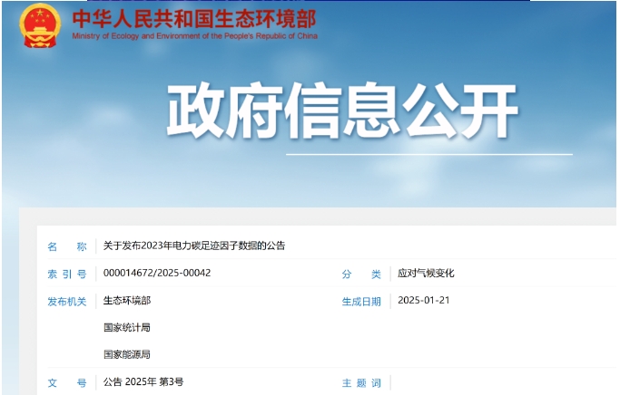 日前,生态环境部、国家统计局、国家能源局发布2023年电力碳足迹因子数据的公告。