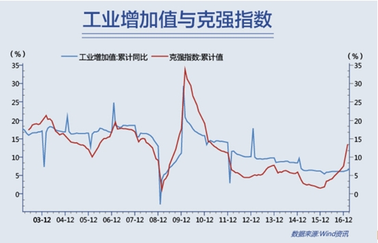 以此为基,回溯2017年以前GDP工业增加额和克强指数关系,便可得到一张几乎趋近于完全相同的走势图,证明了工业用电量对经济增速的重要性。
