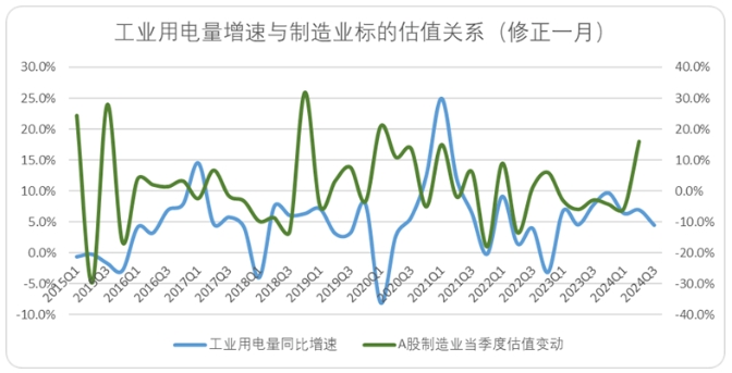 图片图:工业用电量与制造业标的估值关系(修正),来源:Choice金融客户端,锦缎整理