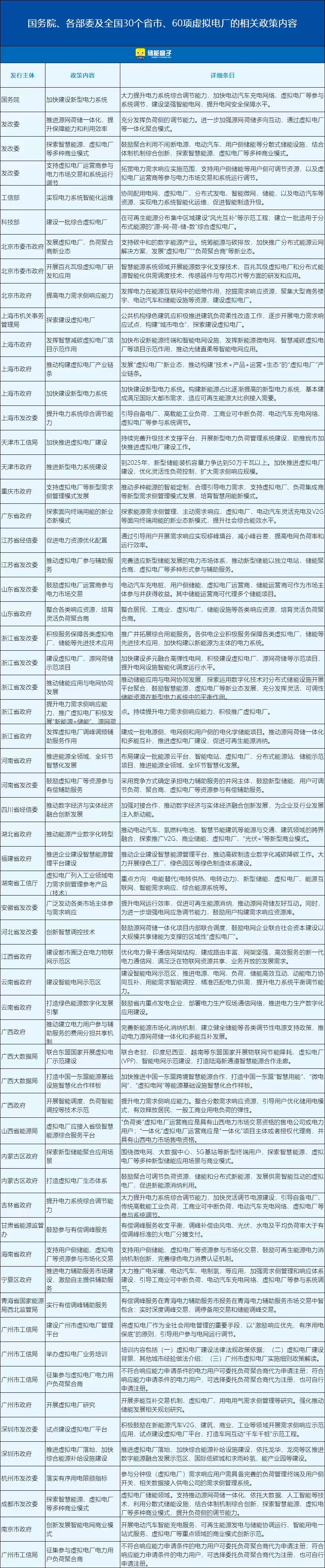 以下是国务院、各部委及其全国30省市、60项虚拟电厂的有关政策内容: