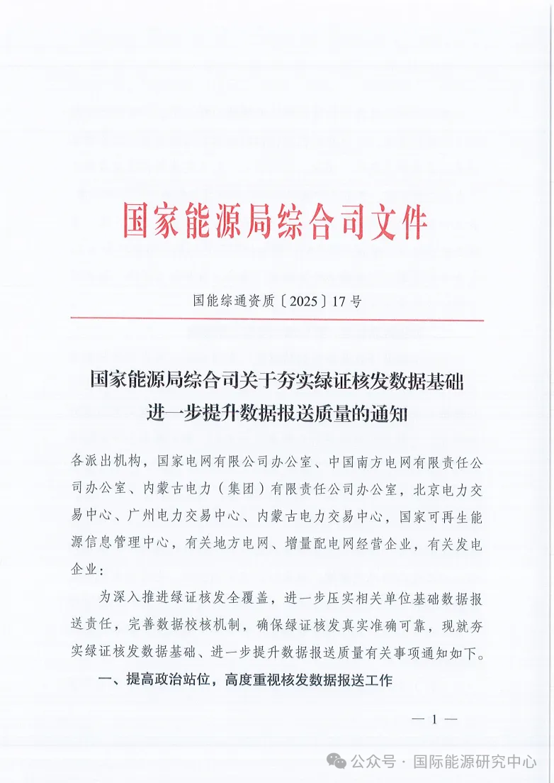 其中强调,绿证是我国可再生能源电量环境属性的唯一凭证,绿证核发数据的准确性是绿证权威性的基础保障。