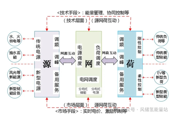 源网荷储一体化是一种围绕新型电力系统构建的运行模式,旨在实现电源、电网、负荷和储能的深度协同与优化整合。通过对各类能源资源的合理规划、协调控制和高效利用,以提高电力系统的稳定性、可靠性和可持续性, 其强调的是在宏观层面上对整个电力系统的资源进行整合和优化,以适应能源转型和电力市场改革的需求。