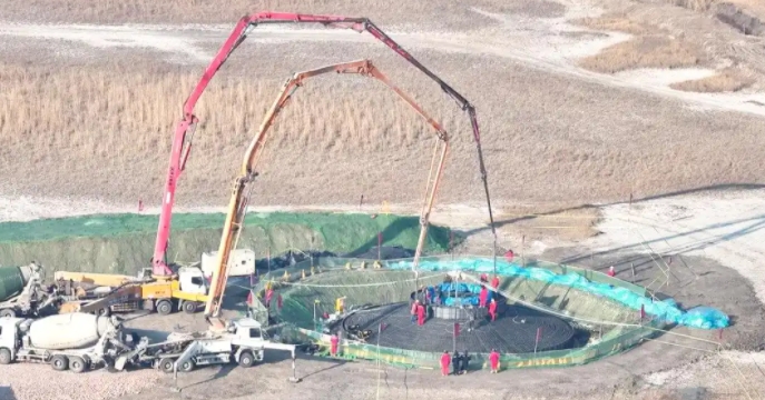 2月13日,在大庆油田首个集中式风电项目——林甸160万千瓦风光发电工程施工现场,林甸项目经理部项目经理王保峰正在现场指挥。一台台满载着混凝土的车辆排着长队等待卸车浇筑,技术人员全程监控混凝土配合比与浇筑流程,确保参数精准无误,质量管控人员对混凝土浇筑质量实时检测,对质量严格把关,打桩、灌桩、焊接锚板、钢筋绑扎等作业同步展开,全力以赴推进项目建设进度。