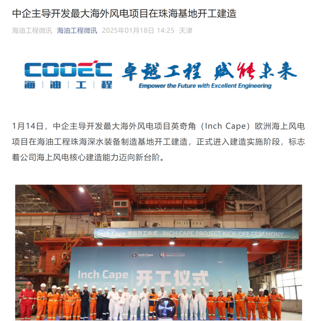 1月14日,国投电力主导开发的最大海外风电项目英奇角(Inch Cape)欧洲海上风电项目迎来新进展。几个月前,该项目因其最终采用维斯塔斯的风机而受到行业关注。